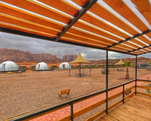 The Martian tent or Bubble Dome , also called Star tent or living dome. extremely weather resistant and very popular in Wadi rum. But in our camp it's totally different ; Because the design of the Martian dome in our camp is more beautiful, with a large opening in the ceiling that allows you to enjoy looking at the beauty of the sky and gaze the stars, in addition to the front view that allows you to view the landscapes in the beautiful Wadi Rum desert, and this is only exclusive in our camp, as the design of these domes is our own only.